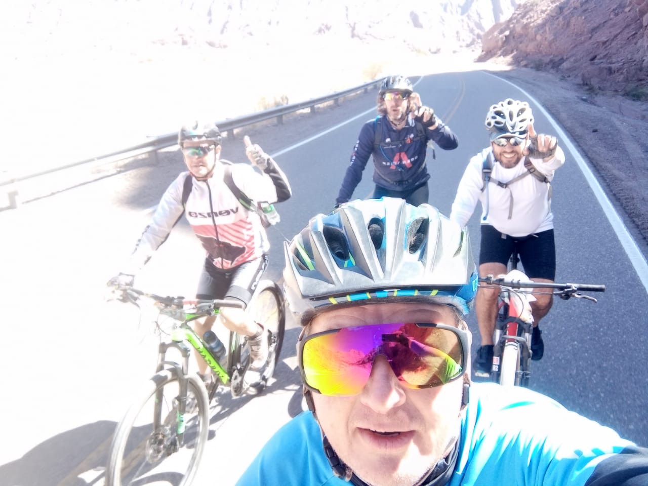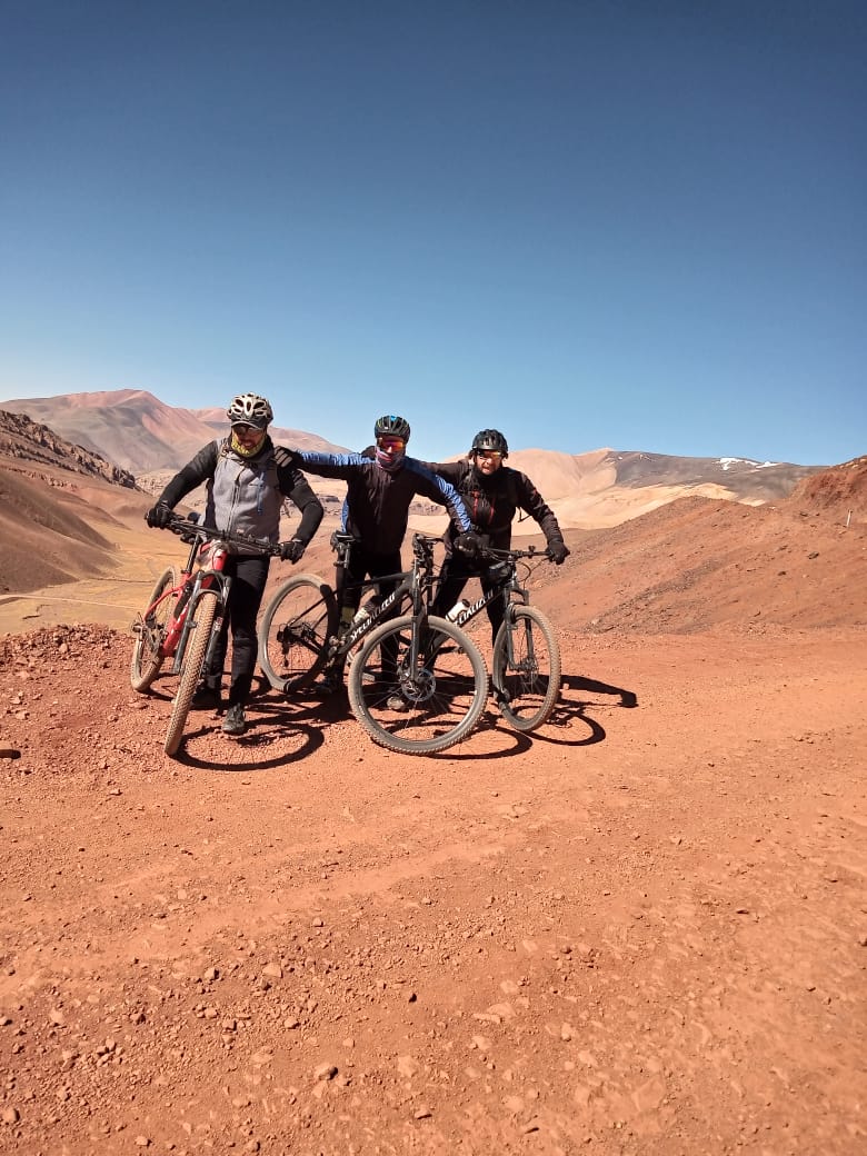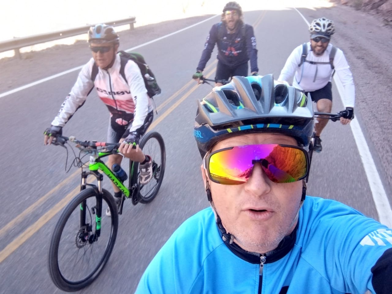 Y el tercer y último día de bicicletear en subida llegó. “Fue la jornada más dura. No se aguantaba el frío y el viento. Luego de casi doras de andar, no adelantamos 3 kilómetros. No sentíamos las manos y las piernas. El Zonda nos volaba las bicis teniendo el precipicio demasiado cerca. En el Portezuelo, a 4000 metros de altura, en una curva y contracurva, tuvimos que bajarnos y esperar que pasen las ráfagas. Pero sin resto ni aire, llegamos y cumplimos el objetivo: poner la bandera de Chascomús en la cumbre”, relató Larry Carosio.
